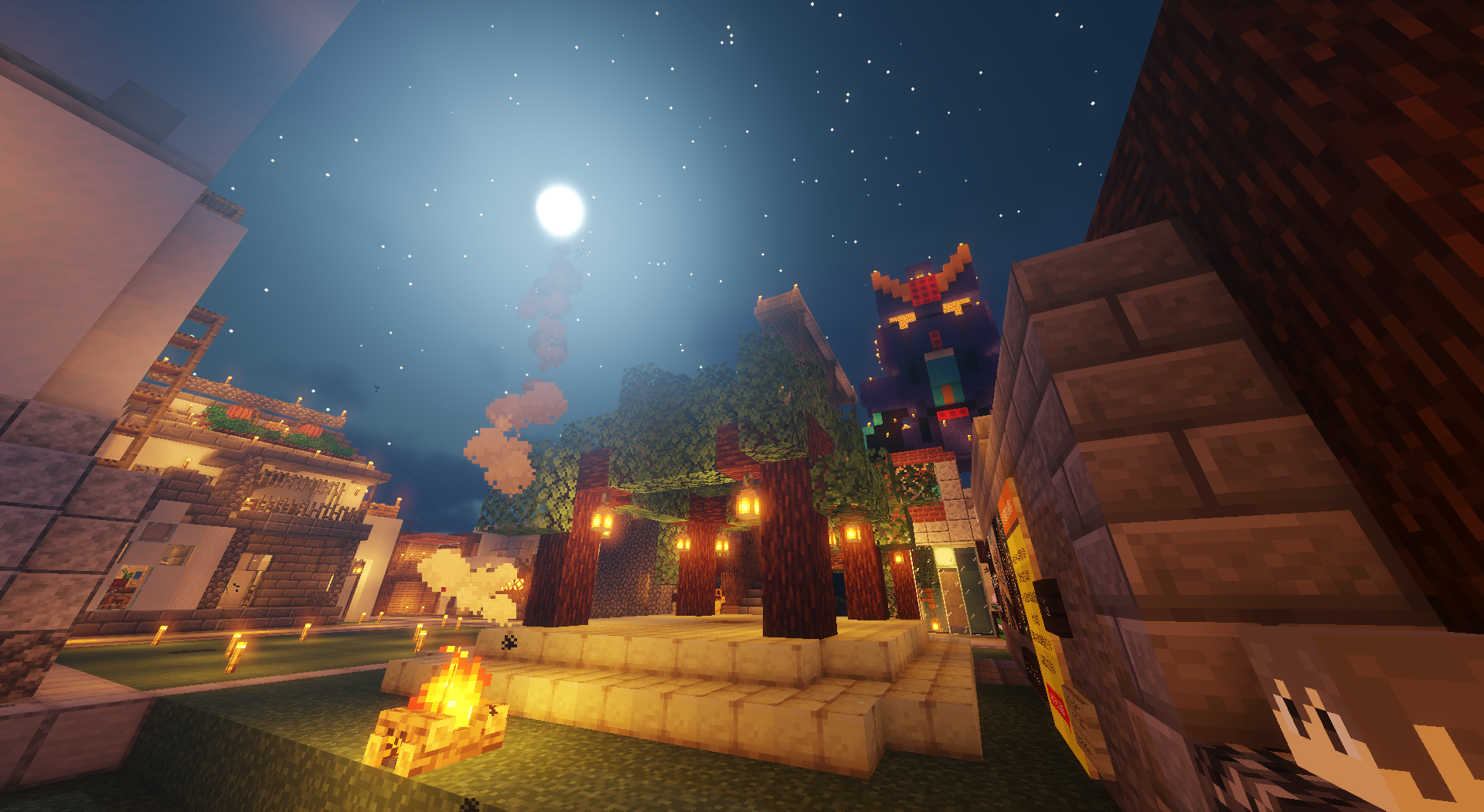いろいろなお店が集っており、現在ラグ解消のためチェストショップの数やMOBの数が制限されています。