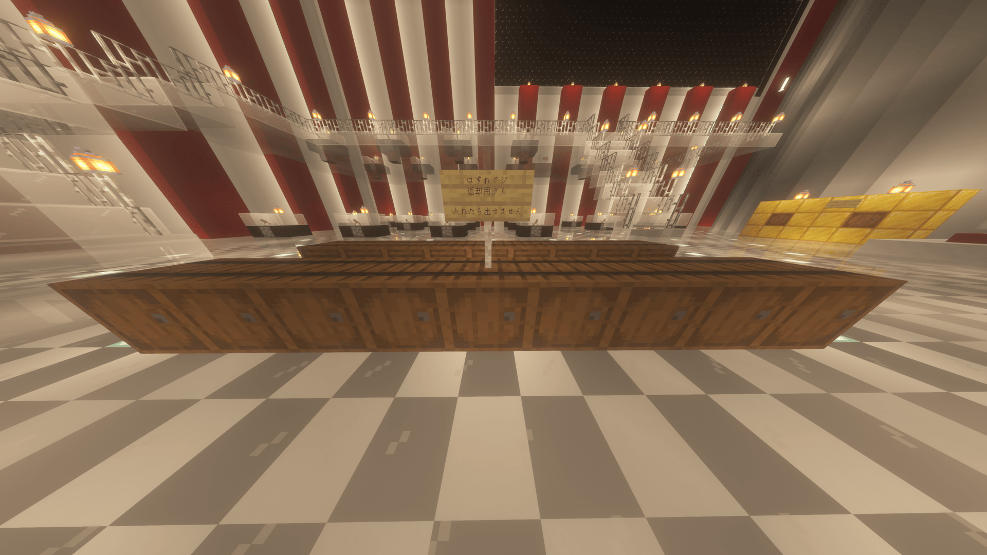 会場前方の「金ピカの樽(タル)」に、当たりくじを入れてください。